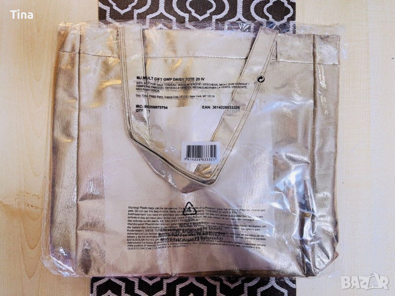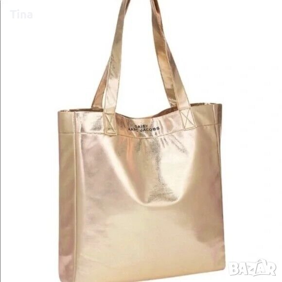 Голяма, златиста чанта (може да се използва и като плажна чанта)