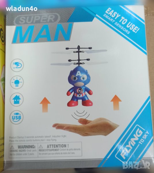 При включване на куклата започва да пърха и лети в затворено помещение.С ръката си детето направлява летенето като маха и слага дланта си под фигурката за да "не падне " на земята и съответно насочи летенето нагоре .