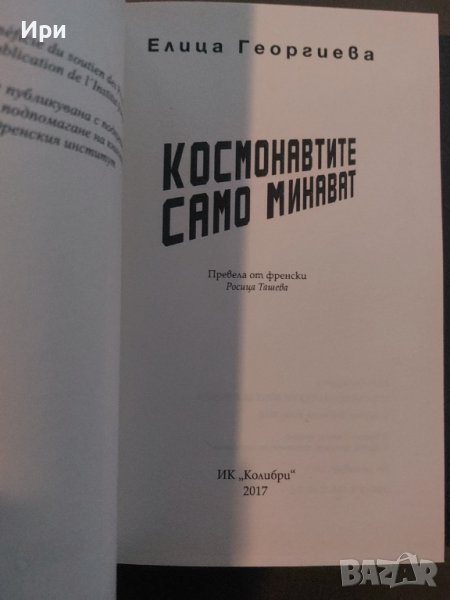 В "Космонавтите само минават" едно малко момиченце крои велики планове за собственото си бъдеще: да стане Юрий Гагарин, а после и Кърт Кобейн, или поне партизанин като дядо си, за да му позволят да засади борче в училищния двор и по този начин да впечатли Констанца, вечната й приятелка или най-големия й враг. А докато си сменя идолите, които непрестанно загиват по неясни обстоятелства, докато трупа опит и разочарования, личната й история неусетно се свързва с историята на страната й, малко преди големия демократичен взрив. Този разказ проследява как политическите събития навлизат в живота на всеки човек, влияят на мечтите му, определят ценностите му - и начина, по който може да им устоим. "Космонавтите само минават" е написана със самоирония и тъжен хумор автофикция, с която Елица Георгиева започва една обещаваща литературна кариера. Очаровал френския читател с наивната мъдрост на своята героиня, романът несъмнено ще стопли сърцето и на сънародниците й в България.