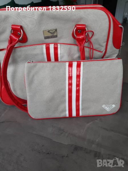 Чантата е с размери 38/31/17 с подвижен несисер 30/18 с леки следи от употреба. Подходяща за спорт и пътуване.