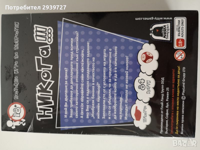Групова игра с карти Никога, снимка 1 - Настолни игри - 39259751 Групова игра с карти Никога, снимка 2 - Настолни игри - 39259751 Групова игра с карти Никога, снимка 3 - Настолни игри - 39259751 1/3