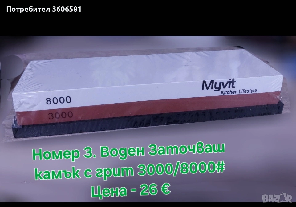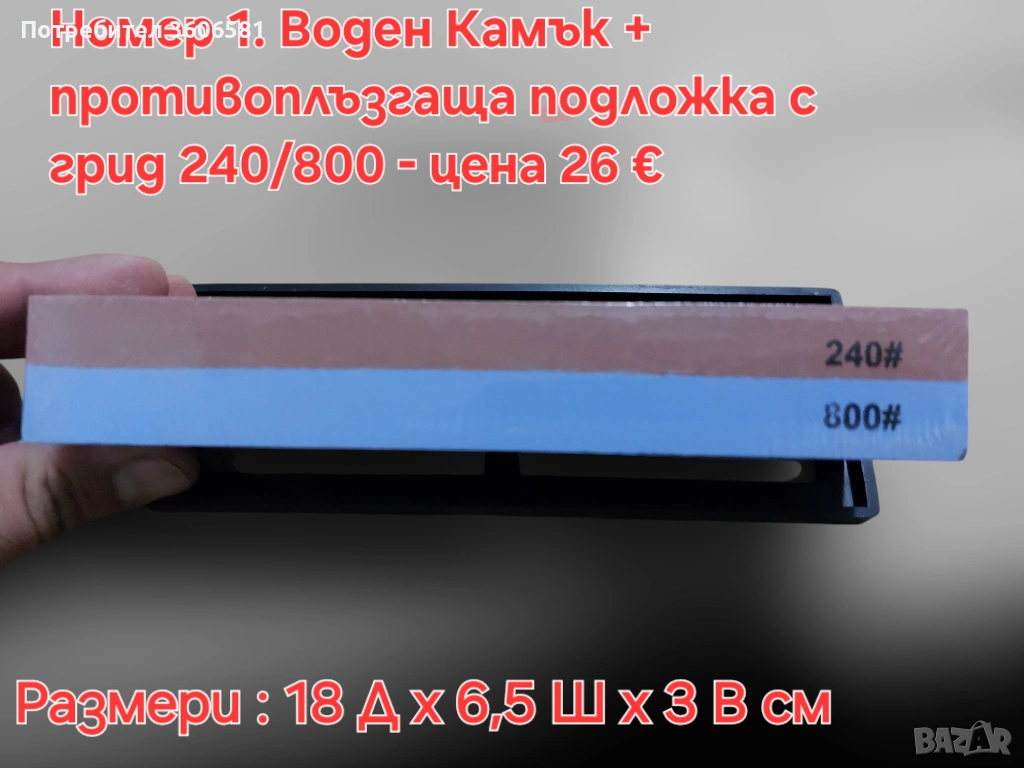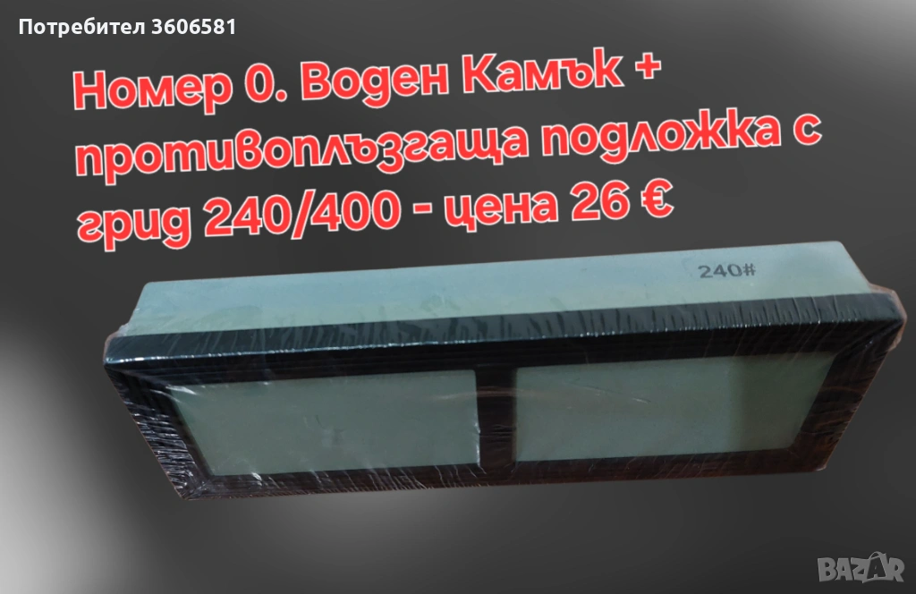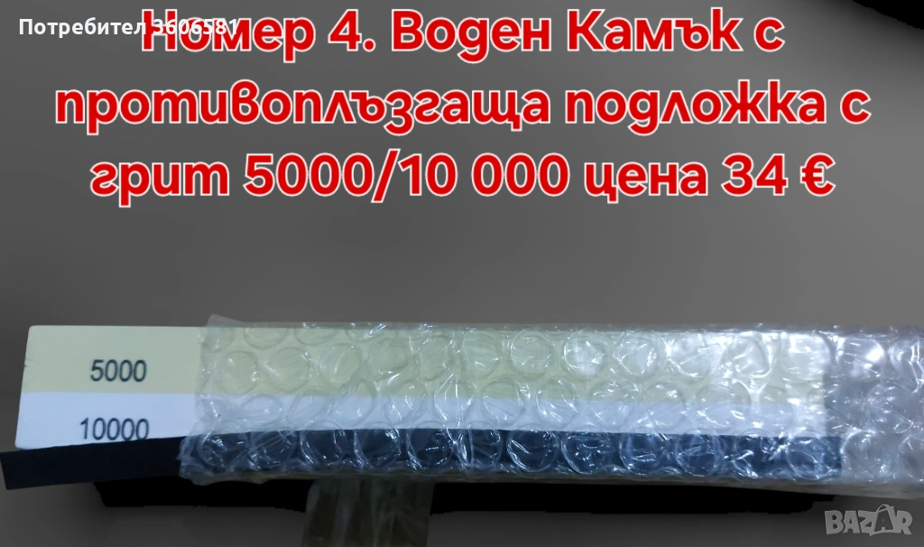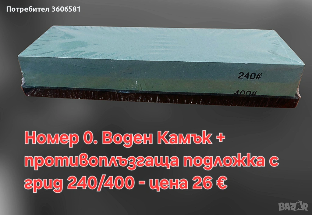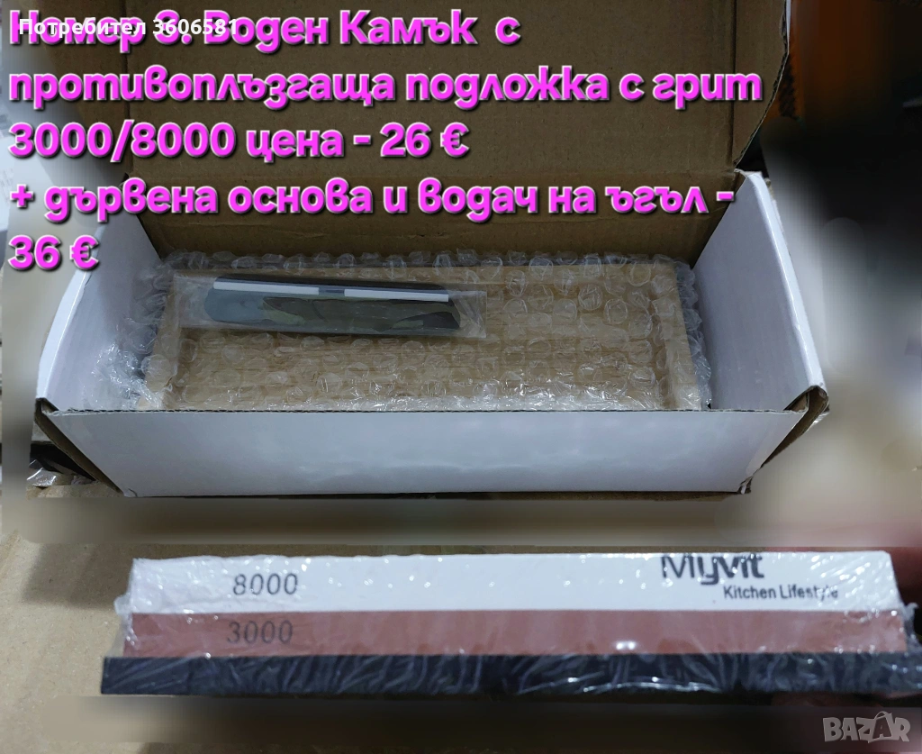 При закупуване на Стока /за над 95€ подарък- нов нож + водач на ъгъл + дървена основа за воден камък.