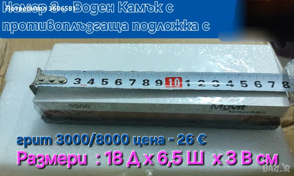 Грапавост 8000 е много по фин камък, който ще полира и заточи перфектно вашия остър нож.