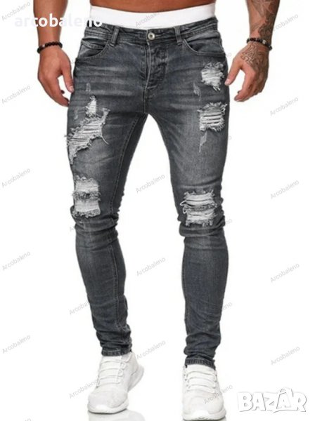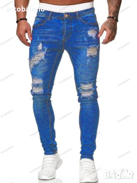 Мъжки едноцветни скъсани еластични тесни дънки, 4цвята
