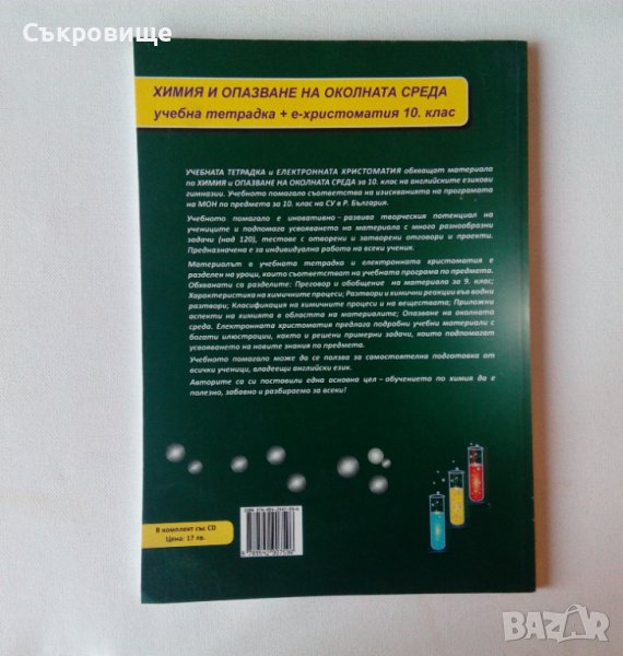 Учебната тетрадка и електронната христоматия обхващат материала по Химия и опазване на околната среда за 10. клас на английските езикови гимназии.