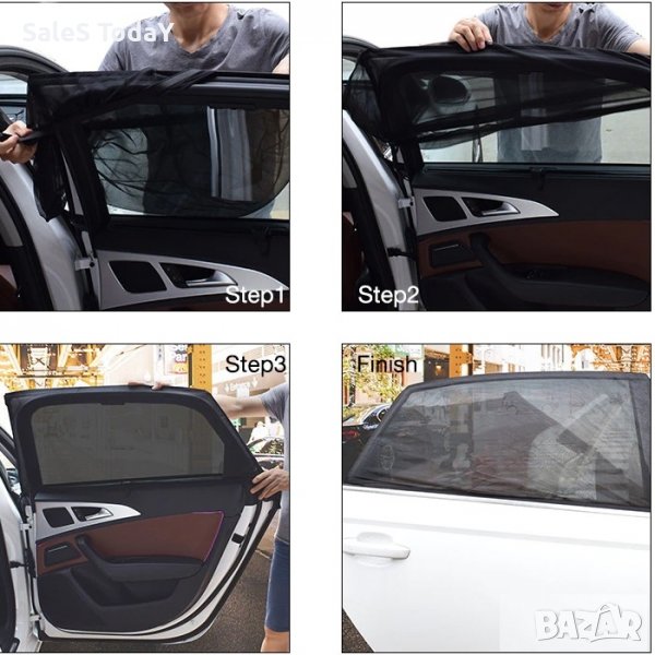 Сенник за странично стъкло, 2бр сенници за странични врати, 94х51см, комплект