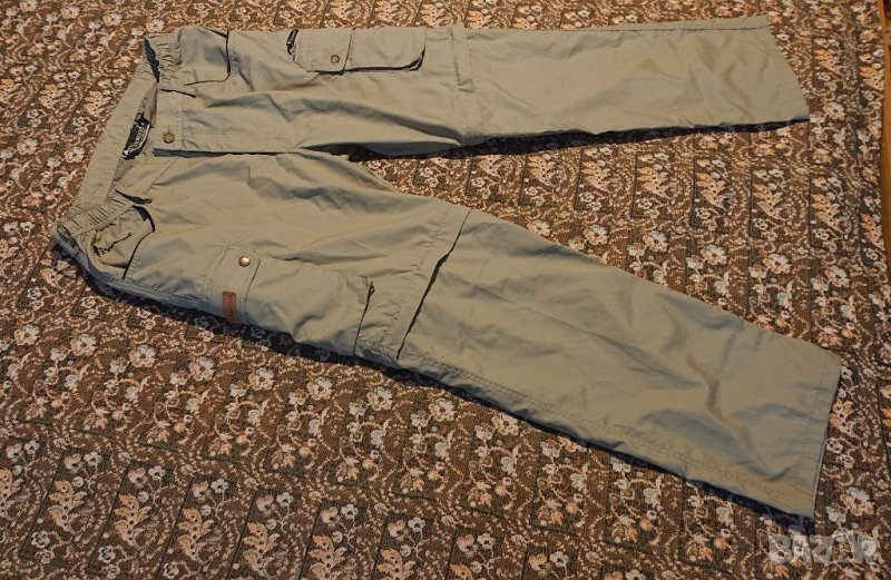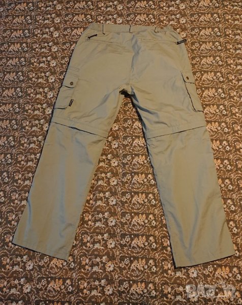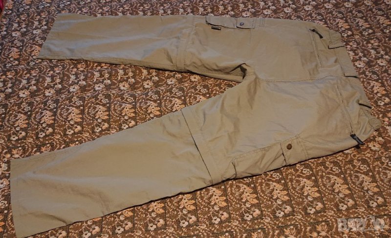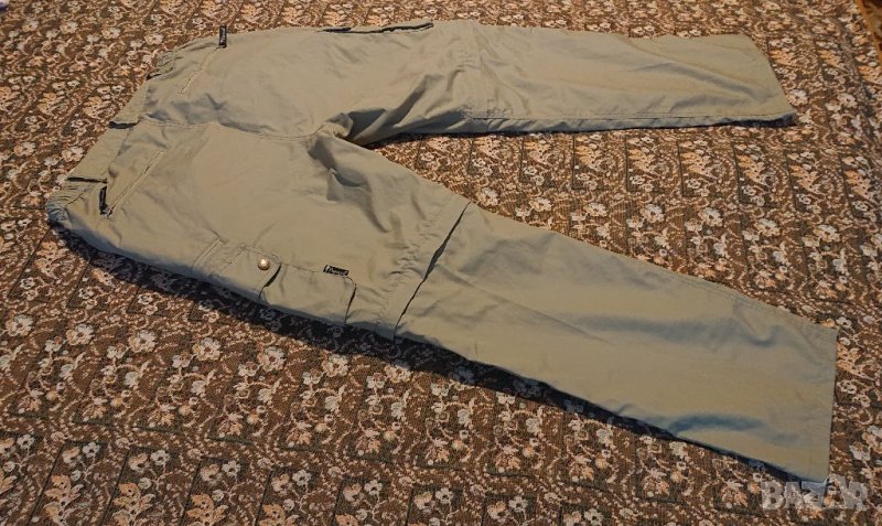 Панталонът е без никакви забележки. Състояние близко до ново. Моделът е без подплата. Крачолите са с ципове и става на къси гащи. Размери: Дължина мерена отстрани 101 см. От чатала 74 см. На кръста (с ластик) 44-50 см. Издръжлив и функционален панталон. Тъй като дългите крачоли могат да бъдат свалени, този панталон е много гъвкав. След хладна сутрин, когато слънцето изгрее краката се стоплят и късите гащи ще ви накарат да се чувствате комфортно през деня. Изработени от издръжлива и дишаща материя TC-Lite™, която осигурява комфорт и през по-топлите дни при дълго ходене. Еластична талия. Обработено с Bionic Finish® Eco за допълнителни водоотблъскващи свойства и свойства против мръсотия.