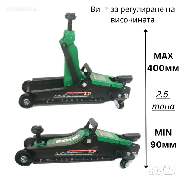 -Максимална височина на повдигане: 400мм/40смКрикът е с винт за регулиране на височината, позволява допълнително повдигане или сваляне, удобен и лесен са работа.