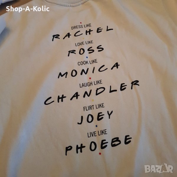 Оригинален суетшърт от култовия за 90-те сериал -Приятели! Много свеж и ефектен. Безупречен вид и състояние. Размер: XL/175/116A. Унисекс. Разполагаме с много други интересни и уникални артикули-при интерес и желание, моля, разгледайте и другите ни обяви, за което ще сме Ви страшно благодарни! Моля, последвайте ни и в Instagram: shop_a_kolic