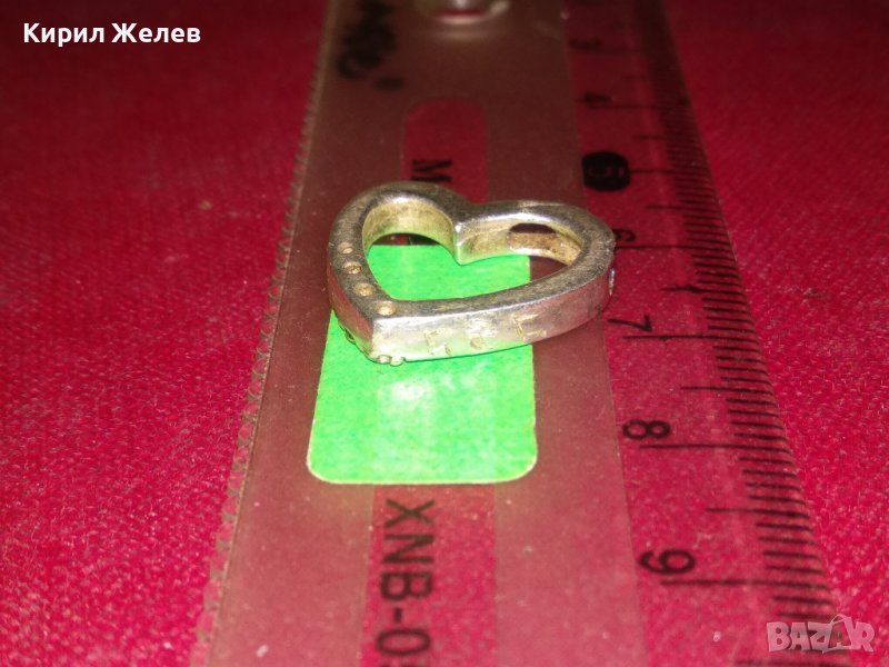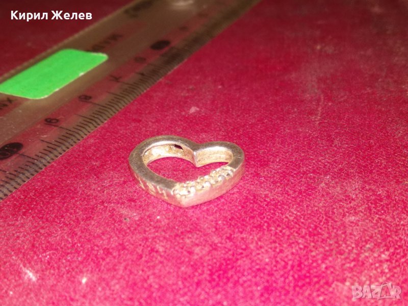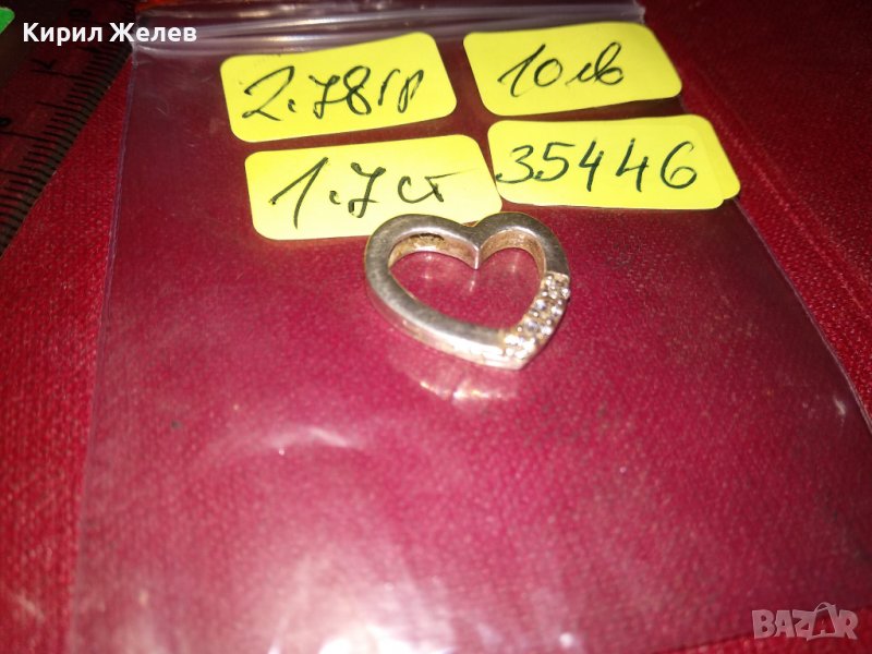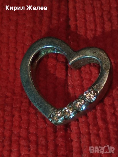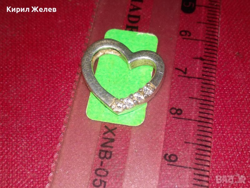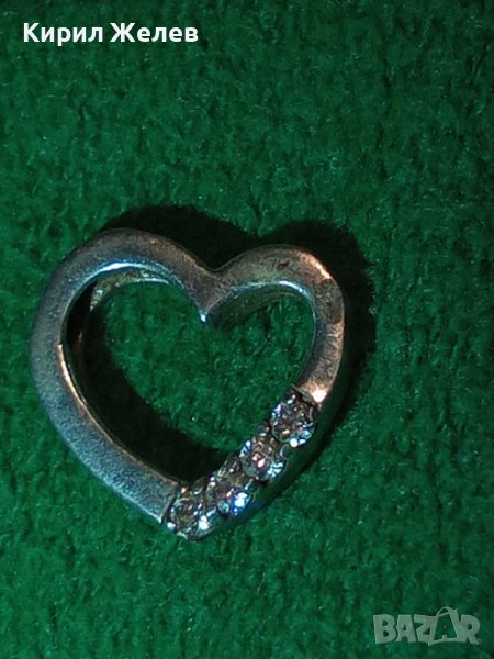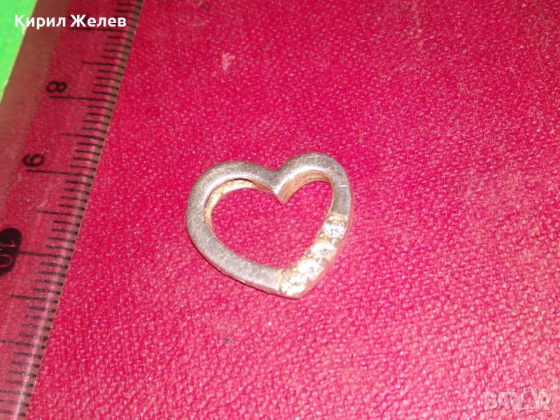 НЕЖЕН СЪРЦЕВИДЕН СРЕБЪРЕН СКЪПОЦЕНЕН МЕДАЛЬОН с БЯЛА ПОЗЛАТА и ЦИРКОНИ 35446