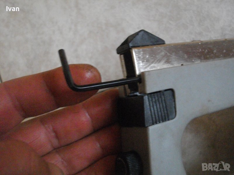 Вградено място на пълнителя за ключ шестограм за отваряне на главата при заседнала скоба. Наличен е на мястото си оригиналният немски шестограм закалена стомана.