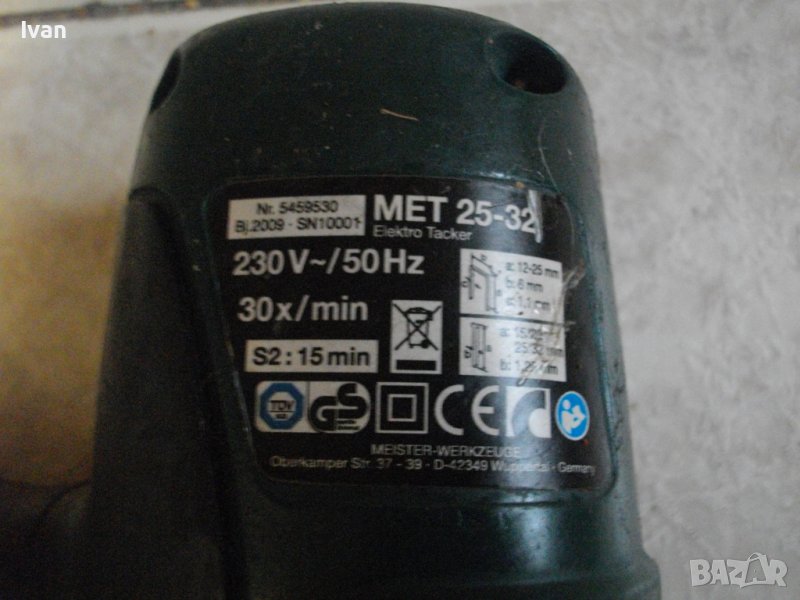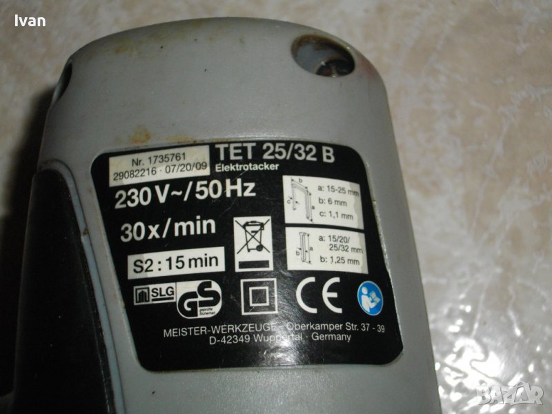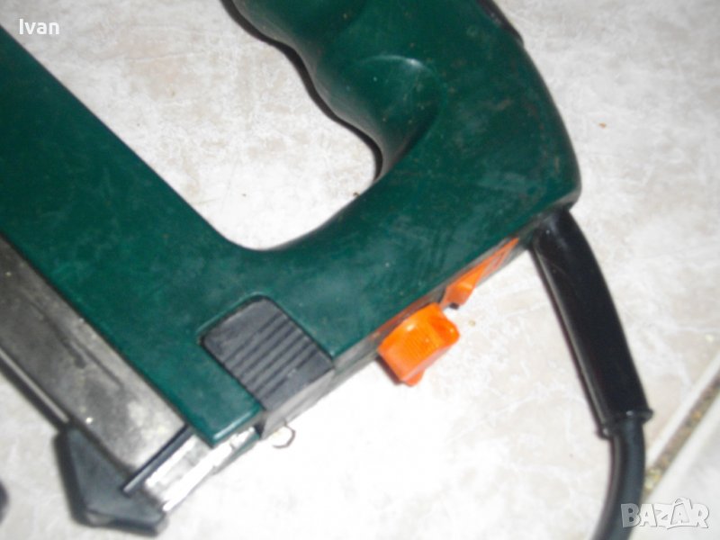 електрически такер, тип дърводелски/тапицерски, немски оригинален модел на Мейстер Крафт за големи консумативи до 32 мм.