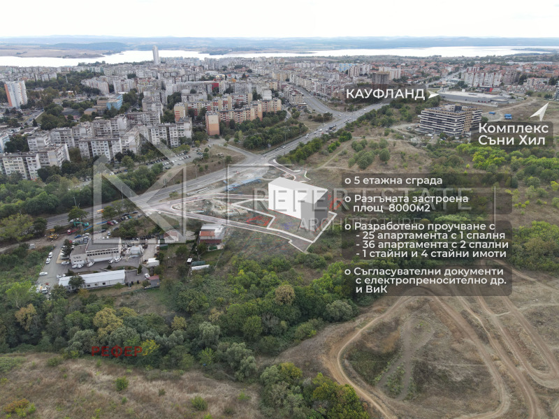 За по-големият парцел е разработено обемно проучване за 5 етажна сграда с РЗП близко до 8000м2. Параметрите на застрояване са КИНТ 2, кота корниз 15м, плътност на застрояване 40%. При интерес, моля, обадете се на 0877268787 Иван Иванов