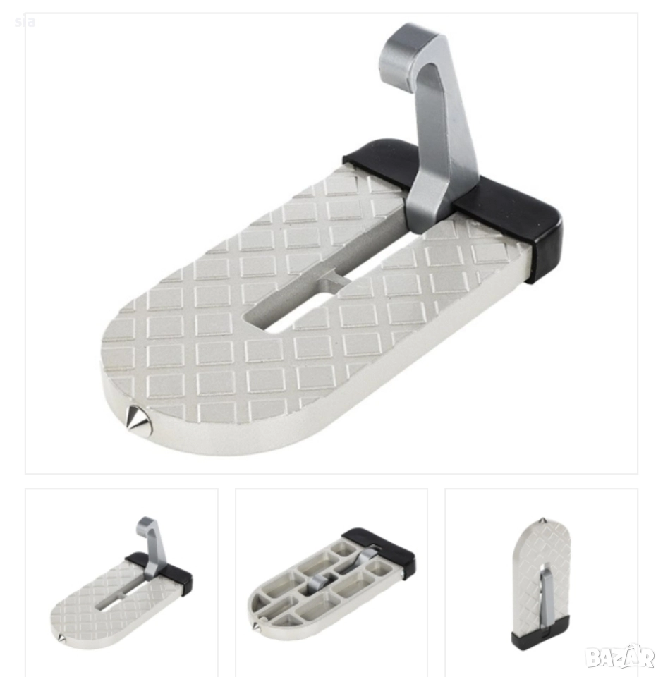 Стъпалото за врата е практичен и компактен автомобилен аксесоар, проектиран да улеснява достъпа до покрива на превозното средство. Монтира се бързо и сигурно върху U-образната кука на вратата, без да изисква инструменти или допълнителни приспособления. Благодарение на стабилната си конструкция и противоплъзгаща повърхност, стъпалото осигурява надеждна опора при поставяне или сваляне на багаж от таванни греди, багажници и кутии.