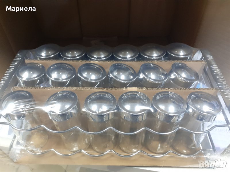Метална стойка с 18 бурканчета за подправки с размер: 32,5х10,5х18см.