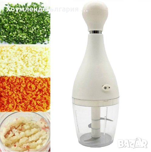чопър за бързо и лесно кълцане и дробене на чесън, лук, ядки, билки, подправки и други подобни.