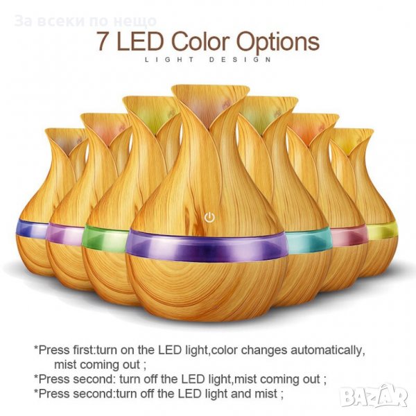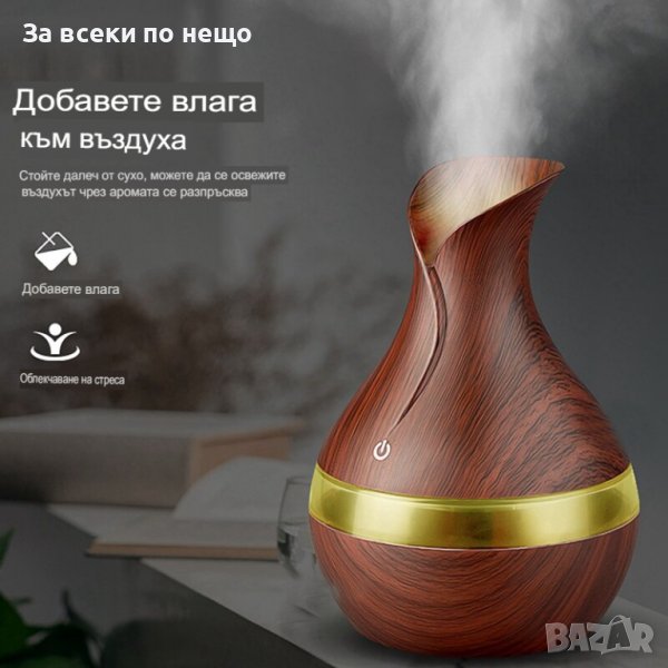 Арома дифузер с етерични масла за домашна ароматерапия е иновативен продукт, който разпръсква вода и етерични масла в дома ви. Добавете в резервоара вода и няколко капки от любимите ви етерични масла.