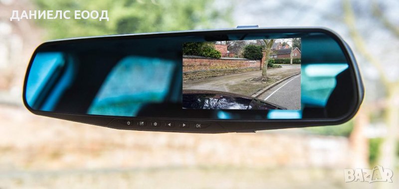 Видеорегистратор DVR огледало с вградена батерия за автомобил с предна и задна камера Rear View Camera. Комплект с две камери.