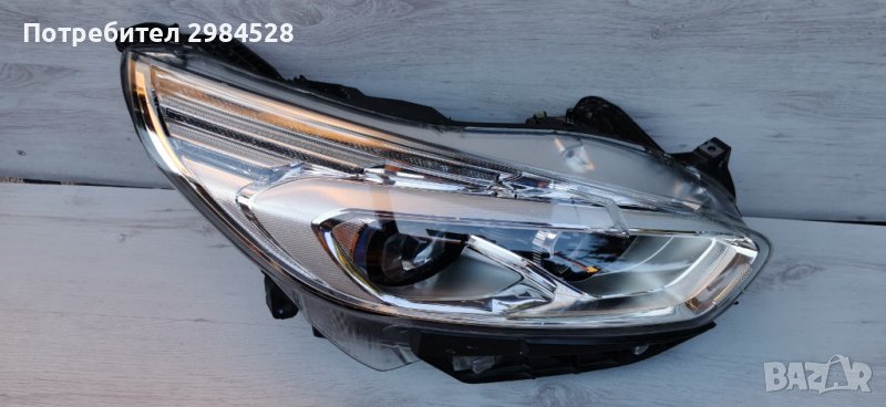 Оригинален десен фар за Ford S-Max - Full LED, малка козметична забележка, пукнатина на стъклото от към предната решетка, която се пада скрита, и не се вижда, когато е монтиран фара. Не пропуска влага или прах. Корпус и захвати в много добро състояние. Необорудван.
