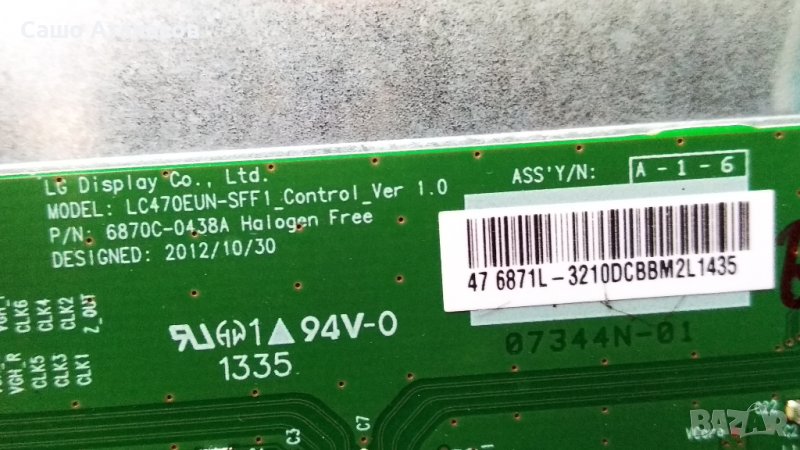 T-Con Board: LC470EUN-SFF1_Control_Ver 1.0 ( 6870C-0438A Halogen Free / 6871L-3210D ) - 30лв.