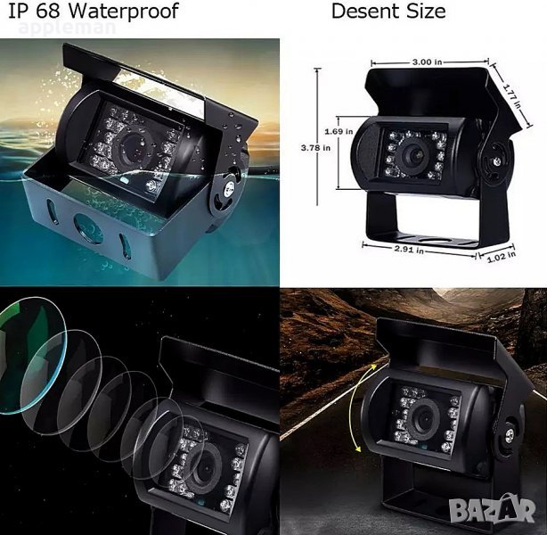 2 броя IR вискозащитна камера за обратно виждане с вграден 2.4GHz безжичен предавател - Автомобилен водоустойчив обектив, с 18 индивидуални инфрачервени (IR) LED.