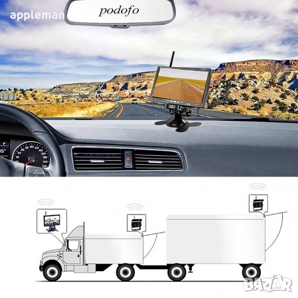 Безжична система за паркиране за камион, автобус монитор 7 инча две камериза задно виждане парктрони