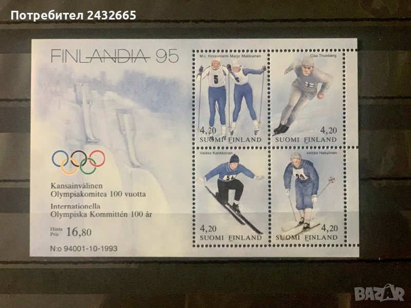 1346. Финландия 1994 = “ Спорт. Зимни спортове. Филателна изложба Finlandia95 ” , MNH, **