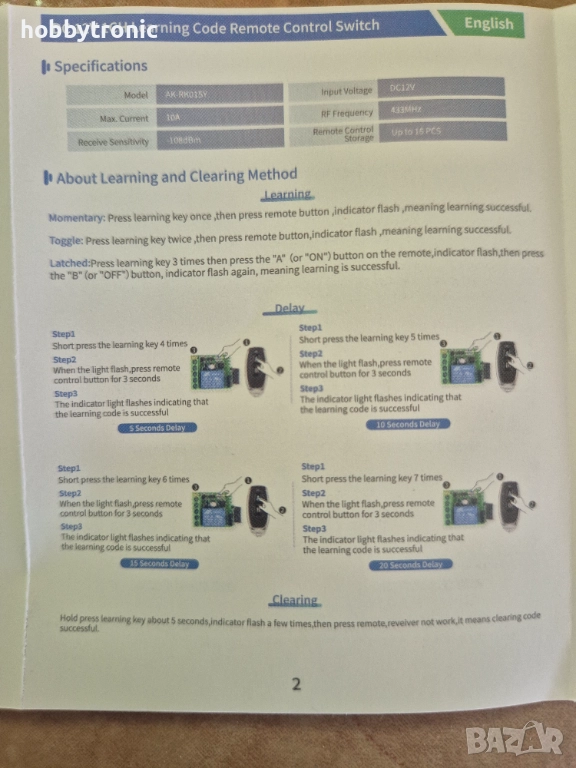 Продавам модул за дистанционно управление с едно реле с един превключващ контакт.