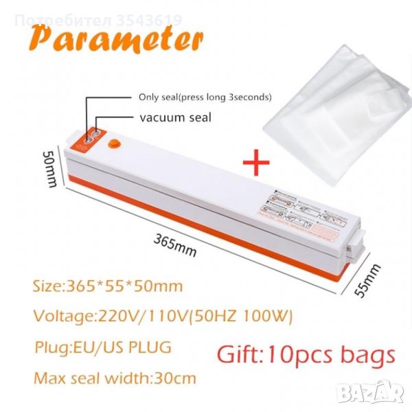Максимална широчина на торбички за вакуумиране: 30см.;