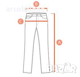 Висока талия. Нашият модел е висок 169 см и носи размер XS. На снимката е с размер 34/XS