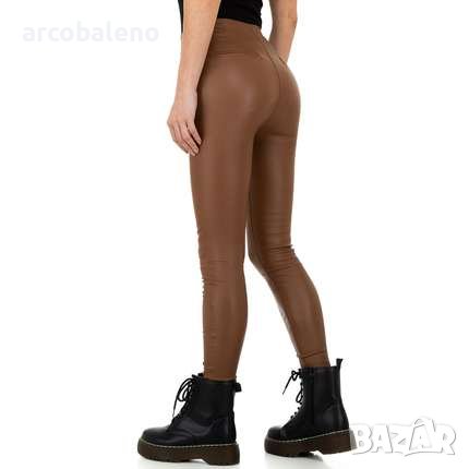 Тесен панталон от имитация на кожа с висока талия, еластичен.