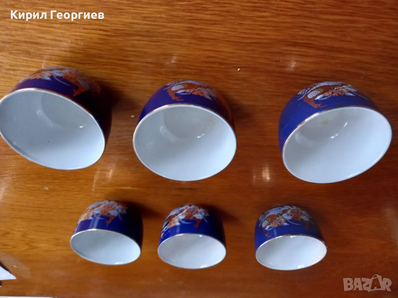 Порцеланов сервиз Пауни 6 чаши в кобалтово синьо с 24 карата златно покритие → Обява 39293836