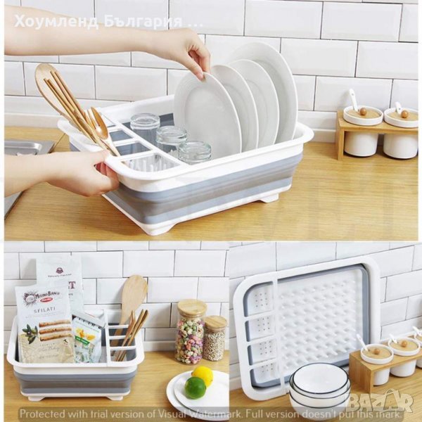 Сгъваем сушилник за прибори и съдове с лесно преносим дизайн.