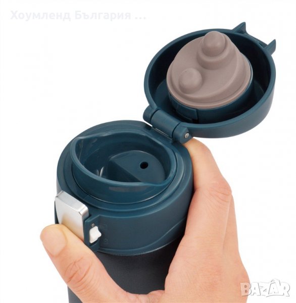 Горната част на капака притежава силиконова тапа, която запушва отвора и запазва аромата и топлината на напитката БЕЗ риск от течове.