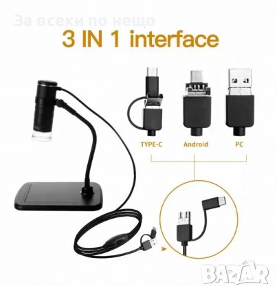 Цифров микроскоп 3 в 1 ви позволява да видите изображението на микросвета на екрана на вашия компютър или телефон и е идеално подходящ за деца, студенти, инженери, изобретатели.