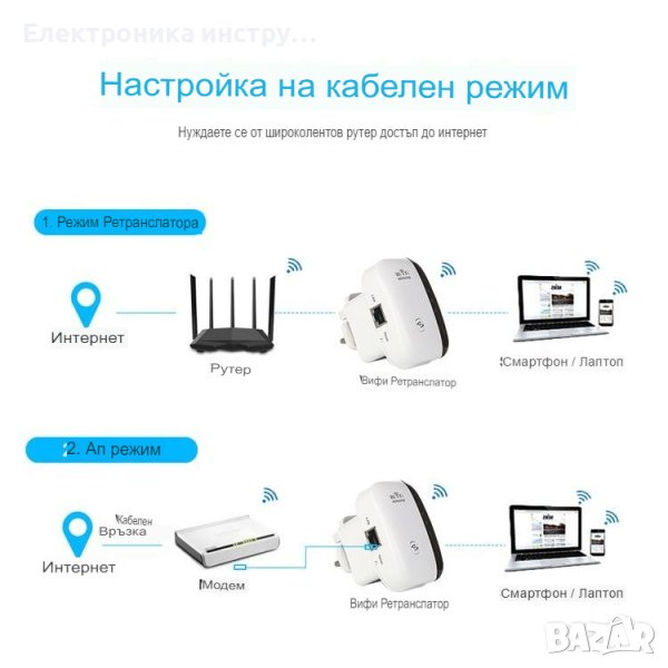 Поддържа 2 режима на работа - Wi-Fi Extender има 1 Ethernet порт с Repeater/AP, може лесно да превърне вашата кабелна интернет връзка в безжична точка за достъп. Той може да функционира и като безжичен адаптер за свързване на всякакви кабелни устройства, поддържащи Ethernet, като Blu-ray плейър, конзола за игри, настолен компютър или смарт телевизор. Които лесно могат да задоволят различни нужди.