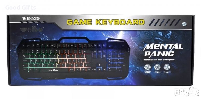 Жична клавиатура на Weibo WB-539. Клавиатурата е с изчистен дизайн и вадещи се копчета за по-лесно почистване. Разполага и с LED подсветка , която е с 18 мил. цвята и има различни режими на светене.