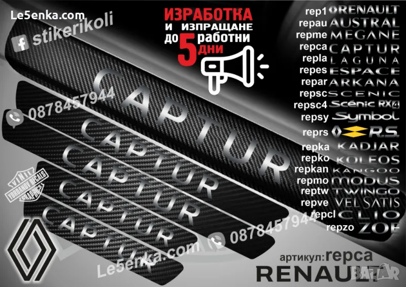 ПРАГОВЕ карбон RENAULT KADJAR фолио стикери repka → Обява 39301588