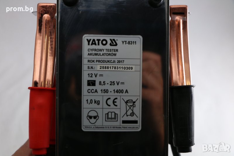 дигитален тестер за акумулатори на автомобили 12 V, YATO, товарна вилка, внос от Полша. CCA - 150-1400 A. LED дисплей. Измерва акумулатори с напрежение от 8,5 V до 25 V. Тегло 1 кг.