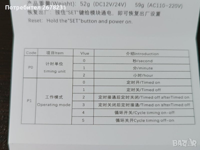 - Режими на работа: забавяне, тайминг, цикъл