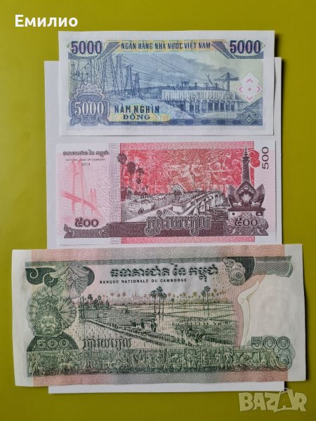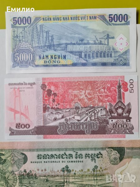 Продавам Сет от 3 Нециркулирали Банкноти от Камбоджа и Виетнам.
