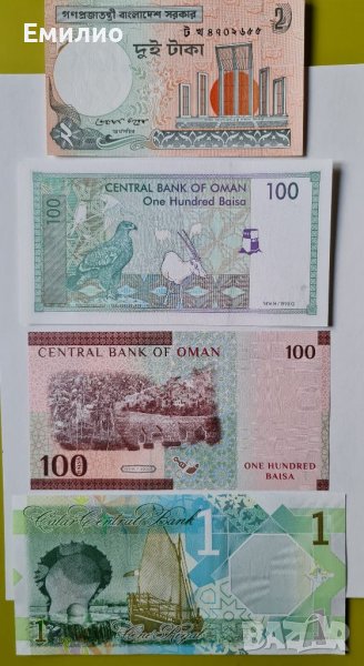 Продавам Сет от 4 Нециркулирали Банкноти от Оман,Катар и Бангладеш.
