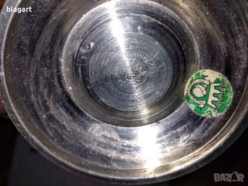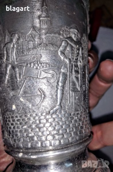 Халба ,бокал от калаено-сребърна сплав . С герба на гилдията на каменоделците и строителите-Германия . За колекционери-рядък сюжет.