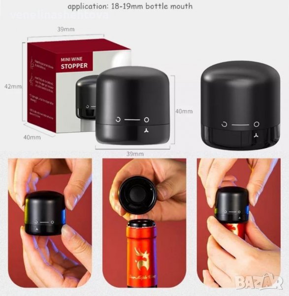 Този стопер за бутилки вино, предотвратява разливане на виното и ви спестява последствията от неприятната ситуация,изцапаните от червено вино дрехи вече стават неизползваеми. Бързо и лесно, само с едно завъртане бутилката вече е заключена.