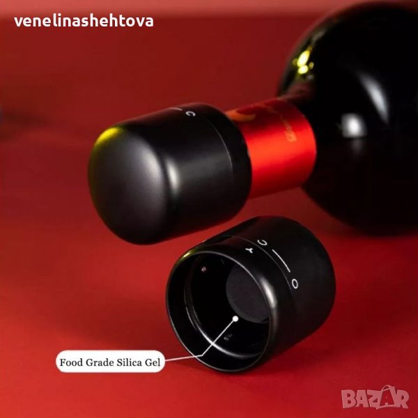 Вътрешните уплътнителни части на запушалката за вино са от силиконов материал, предназначен за контакт с храни, и са по-безопасни.