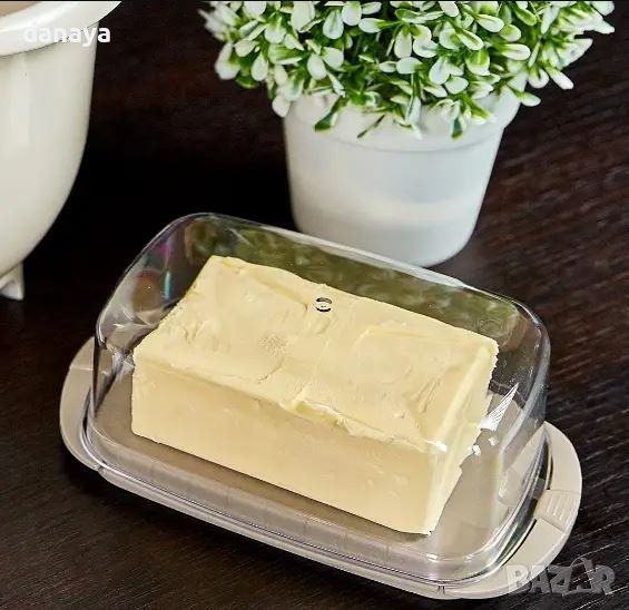 Съд за масло, кутия за съхранение на масло със заключващ механизъм. Кутията за масло не само изглежда добре, но и е много удобна. Капакът не влиза в контакт с маслото и го предпазва от мухи, насекоми или други външни влияния. Тази здрава поставка за масло е изработена от безвредна пластмаса и със сигурност ще се превърне в любима придобивка в дома ти. Практична кутия за масло, която ще ти позволи да съхраняваш както тънките масла, така и тези с по-голяма височина. Материал: пластмаса