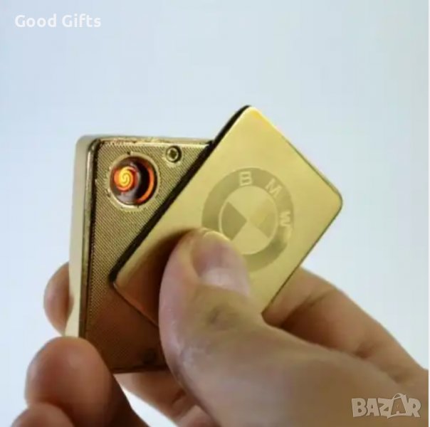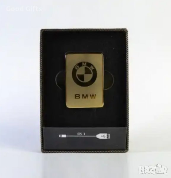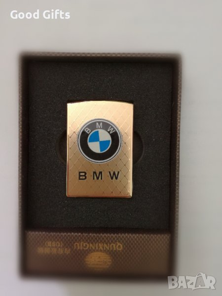 USB плъзгаща запалка за цигари с волтова дъга с лого на капака - BMW (сребрист цвят или златист цвят).