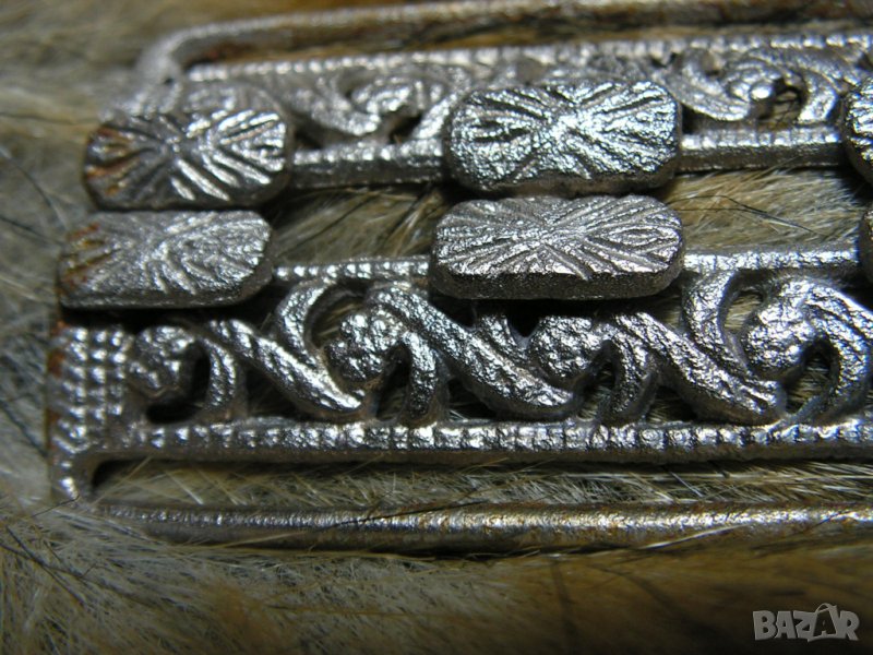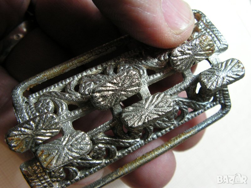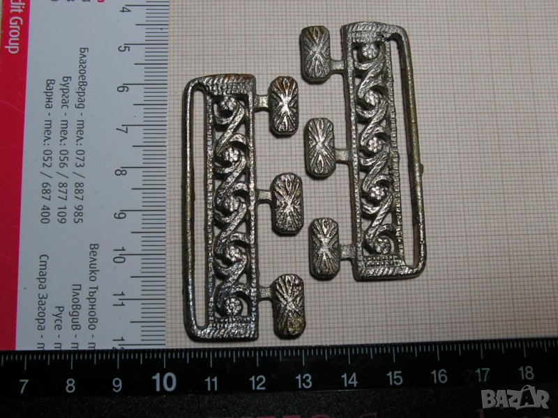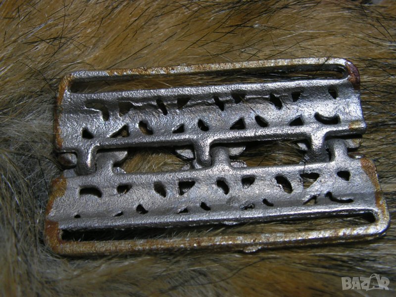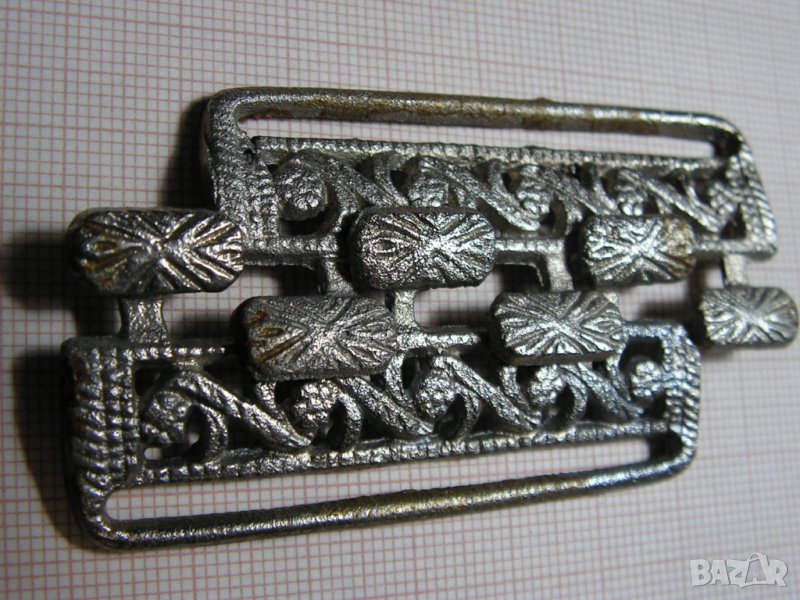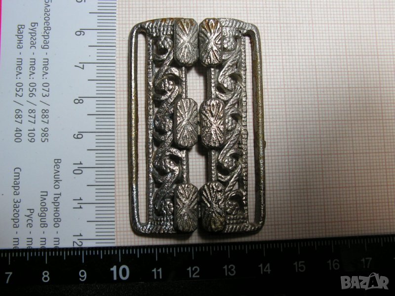 за носене под женски сукман, и по-късно под палтото над носията. Бабата е наричала коланът "зукня" и е имал ширина 4 - 5 см. Хитроумната конструкция на токата е изключвала самооткопчаването и. Снимал съм я и върху милиметрова хартия, редом до линии, разграфени в см. В закопчано положение има размери / 60 / 40 / 3 /мм. Процепа за колана е с височина 55 мм. По токата няма побитости, спуквания , намеси и опити за реставрация. Изпълнена е с флорални мотиви и е красива. Токата е автентична. Всички снимки са на предлагания от мен артикул. Работя със „Еконт“. Може и лично предаване.