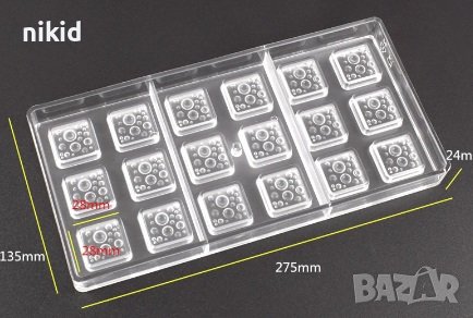 3d квадрати с мехури пластмасова форма Поликарбонатна отливка калъп за Шоколадови бонбони пралини, снимка 1 - Форми - 39308881 3d квадрати с мехури пластмасова форма Поликарбонатна отливка калъп за Шоколадови бонбони пралини, снимка 2 - Форми - 39308881 3d квадрати с мехури пластмасова форма Поликарбонатна отливка калъп за Шоколадови бонбони пралини, снимка 3 - Форми - 39308881 1/3