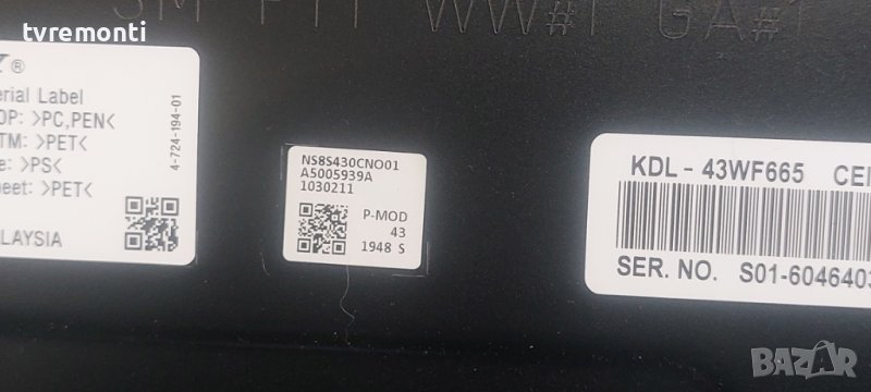 TCon BOARD ,HV430FHB-N1K,47-6021155 SONY KDL-43WF665 DISPLAY BOE DISPLAY NS8S430CNO01 → Обява 39310995